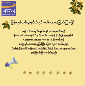 ၂၀၂၆ ခုနှစ် ဧပြီလ (၁၁) ရက်နေ့မှစ၍ (၁၉) ရက်နေ့အထိသည် အများပြည်သူရုံးပိတ်ရက် ဖြစ်ပါသောကြောင့် ထိုနေ့တွင် အီရွန် ကုမ္ပဏီ၏ Customer Service Hotline ၀န်ဆောင်မှုကို ခေတ္တရပ်နားထားမည်ဖြစ်ပြီး ဧပြီလ (၂၀) ရက်နေ့တွင် ပုံမှန်ရုံးချိန်အတိုင်းပြန်လည် ခေါ်ဆိုနိုင်ပါကြောင်းလေးစားစွာ အသိပေး အကြောင်းကြားအပ်ပါသည်။